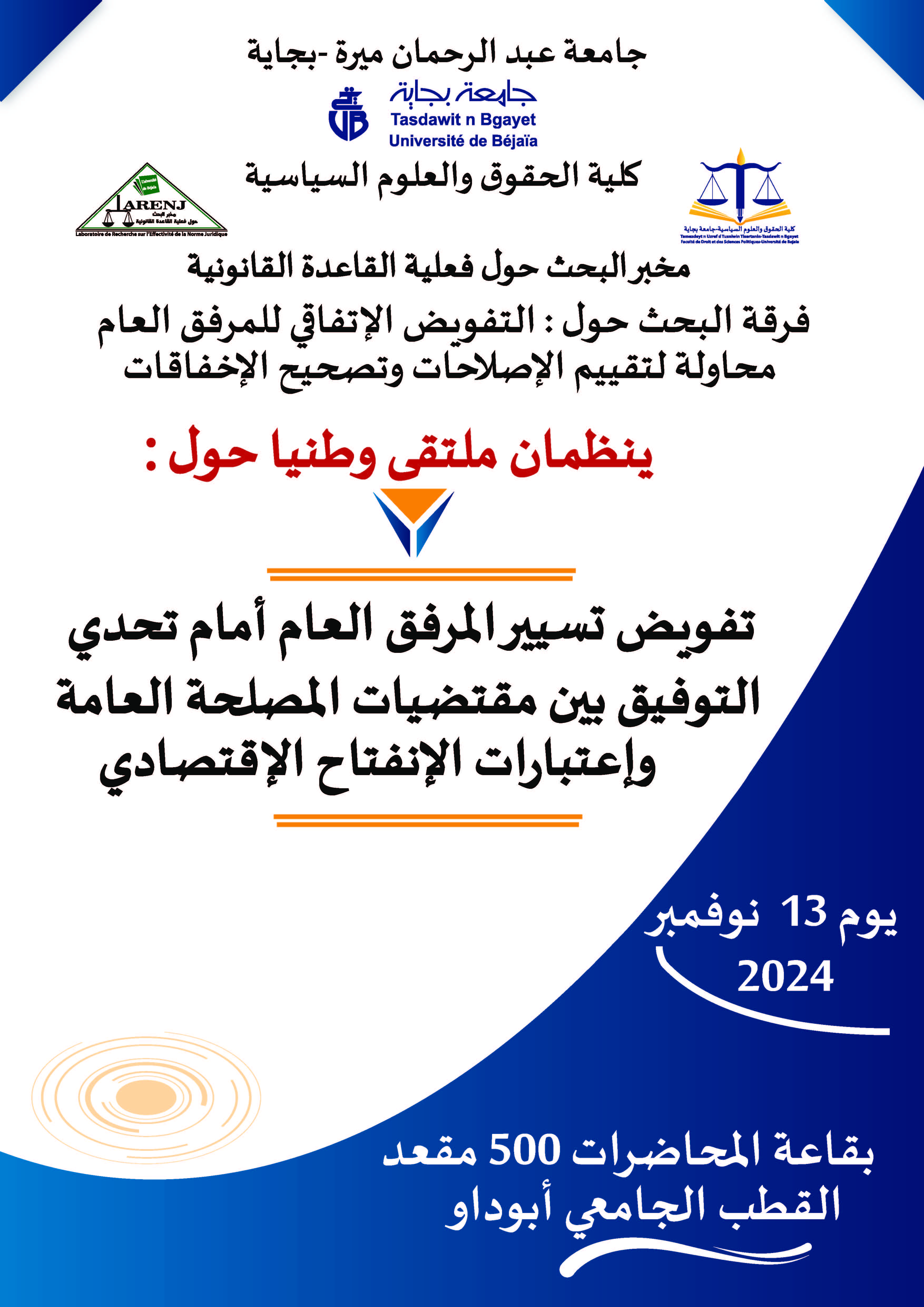 Journée d'étude le 25 Novembre 2024 " الحماية القانونية للموارد المائية في الجزائر: رهانات تحقيق أمن مائي مستدام "