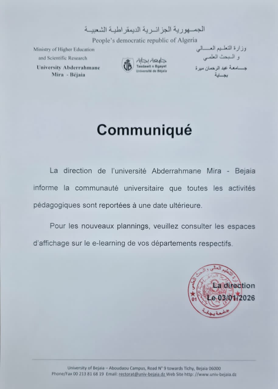 Communiqué(04-01-2026) du conseil de Direction de l'université adressé aux étudiants.