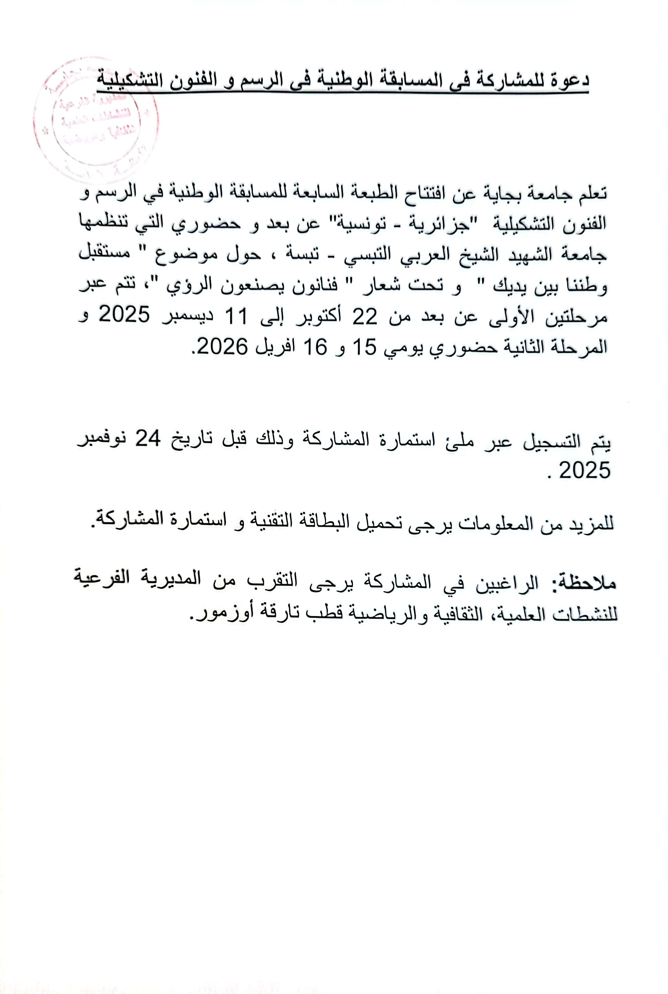 الدعوة للمشاركة في المسابقة