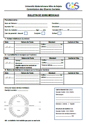 AVIS AU PERSONNEL ATS ET ENSEIGNANTS Nous portons à la connaissance de l’ensemble du personnel enseignant et ATS que la dernière session de dépôt des dossiers pour l’exercice 2025 débutera le mardi 18 novembre 2025 et se poursuivra jusqu’au mercredi 28 janvier 2026 (date limite définitive de dépôt – aucun dossier ne sera accepté après cette date). Lieux de dépôt : • Bureaux de la Structure de Gestion – Campus de Targa Ouzemour • Bureaux de la Structure de Gestion – Campus Aboudaou (ex-Vice-Rectorat de la Pédagogie) Aussi nous vous rappelons que la réception des dossiers se fera comme suit : Du Dimanche au Mercredi – De 08 h 30 à 11 h 30