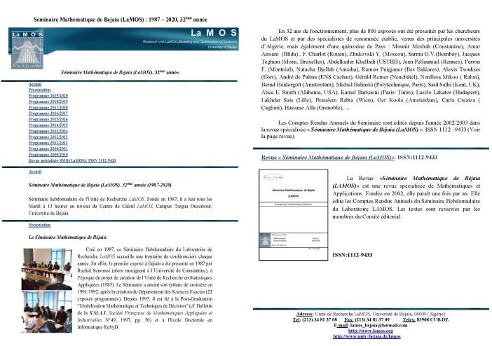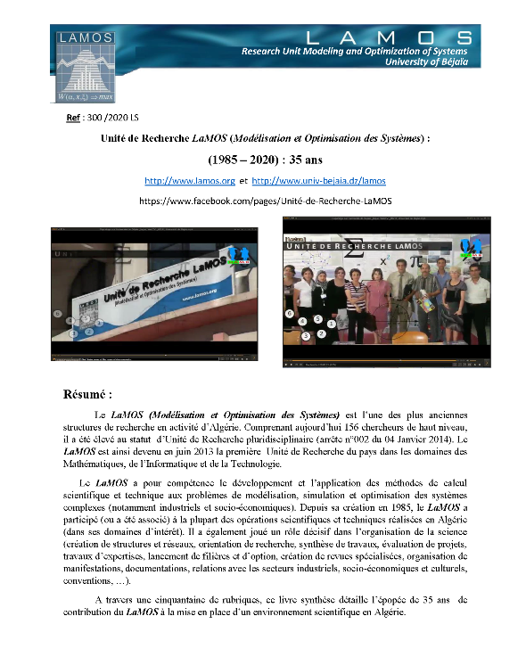 35ème anniversaire de la fondation du LaMOS ( 1985- 2020 ) |
