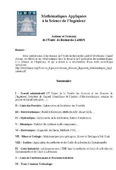 Le LaMOS a pour compétence le développement et l’application des méthodes de calcul scientifique et technique aux problèmes de modélisation, simulation et optimisation des systèmes complexes (notamment industriels et socio-économiques). Depuis sa création en 1985, le LaMOS a participé (ou a été associé) à la plupart des opérations scientifiques et techniques réalisées en Algérie (dans ses domaines d’intérêt). Il a également joué un rôle décisif dans l’organisation de la science (création de structures et réseaux, orientation de recherche, synthèse de travaux, évaluation de projets, travaux d’expertises, lancement de filières et d’option, création de revues spécialisées, organisation de manifestations, documentations, relations avec les secteurs industriels, socio-économiques et culturels, conventions, …).